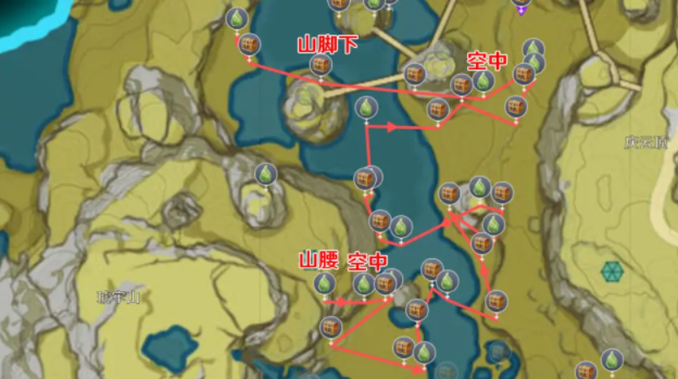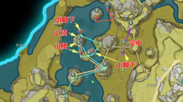 部分特殊点位图上也进行了标注,请仔细看喔:例如空中逐月符、山腰宝箱等。