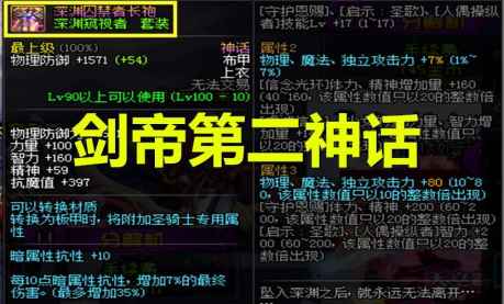 【二】古代深渊长袍 排在第二名的神话,是大幽魂神话上衣,装备搭配选择“水果肩腰裤3件+深渊窥视者3件(神话上衣)+黑魔法探求者2件+次元旅行者3件”的2333混搭模式,装备数据为“额外爆伤73%,额外黄字66%,白字附加121%,所攻82%,三攻75%,力量智力100%,属强499点,技能攻击力300%,攻速34%,暴击40%,1-45级技能+5,50和60-80级技能+4级,85级和100级技能+3级,95级技能+1级,装备提升率91584%,20秒打桩伤害7501亿。
