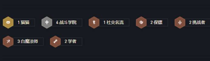 2、阵容羁绊:4战斗学院、3白魔、2挑战、2保镖、2学者、1社交名流、1猫猫