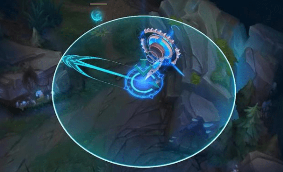 ③地形机制: ⑴传送门有0.7秒引导时间,移动或者受到伤害会被打断。 ⑵使用完传送门后有30秒冷却时间,不同传送门之间CD独立,不同英雄之间CD独立,一个传送门可以同时被多个英雄使用。 ⑶如下图,传送过程中可以选择落点方向,不选择的话会落在传送门口,敌方可以看到你选择的落点,并且选择方向时不能穿墙,否则也会落在门口。