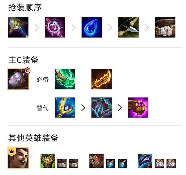 发条装备核心装是青龙刀,没青龙刀发条启动太慢了。其他装备给法爆、无尽、帽子、正义之手、巨人杀手这样的输出装。发条法力值比较高,有青龙刀和没青龙刀是两个英雄。有青龙刀的话羊刀也可以给发条。 其他肉装给塔里克,功能性装备比如圣杯、伏击之爪之类的给风女。有多的水滴或者法强装备也可以给风女或者萨勒芬妮,这样启动快,回血续航能力也强。萨勒芬妮和风女都有治疗效果,不同的是风女增强控制能力,萨勒芬妮给队友加攻速。
