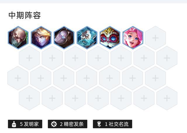 4-1上7人口,有5发明家就可以直接拉八人口,白到发条就把其他棋子装备取了给发条。如果质量不够就要先提升下质量,D几下牌,找发明家棋子开5发明家。或者找个拉克丝、两星蚂蚱先顶着,质量差不多了就可以上八人口了。切记不要在7人口花太多钱,稍微提升下质量就行了,这个阵容还是很容易锁血的。另外选秀有杰斯的话一定要拿,拿到杰斯就稳了。