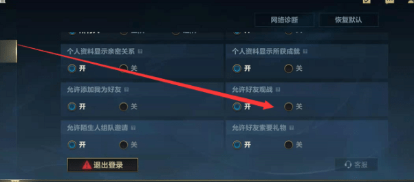 4、这个设置默认是开启的,我们选择关闭即可,这样好友就不能进行观战了。 |