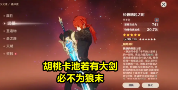 但还有第二种情况:若公子的武器卡池为“弓+长柄武器”的组合,则胡桃的武器卡池必定不为“长柄武器+弓”,必定从单手剑、法器、大剑中三者选其一。 海灯节期间出现过“护摩+狼末”的组合,因此,本次卡池必不为“护摩+狼末”,而最有可能替代狼末的是松籁大剑。可得,当公子卡池为“弓+长枪”时,胡桃的武器卡池为【护摩之杖】+【风鹰剑】/【尘世之锁】/【松籁大剑】。