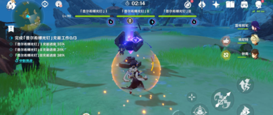 玩法是需要三个光钉同时充能,只瞄准一处光钉的打法完全行不通 使用雷属性攻击攻击光钉一次即可充满,不能只盯着一处打,否则会打断读条,让充能减慢,所以唯有循环打才行 六处采样点位: 风龙废墟