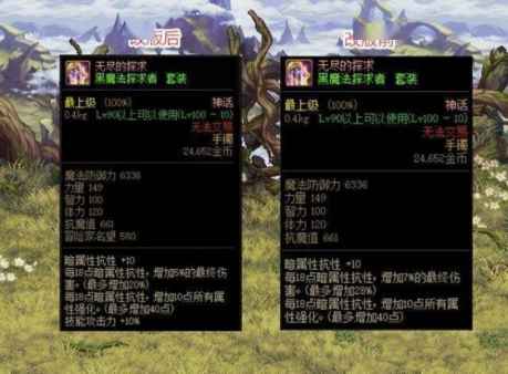 其次红眼排名第2的神话搭配是大幽魂6(大幽魂手镯神话)工作服3、吞粪2的632搭配,这套搭配在史诗神话改版前无人问津,大多都是9+2的搭配。作为大幽魂系列的最弱神话,虽然+240四维逼格很高,但是由于神话数据本身比较低,所以红眼神话只能排在10名开外,但是经过此次装备改版之后,大幽魂手镯一举成神,虽然把28%的最终改成20%的最终,但是神话却直接增加10%的技攻击力,直接成为大幽魂系列神话第一。ps:吞粪持续伤害5秒变更3秒。