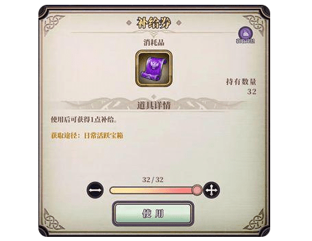 1.补给每1小时恢复1点,记得用,恢复满了不会再增加。 2.资源重要度 :极地晶石 > 极地纯石 > 黑铁/魂晶> 女武神圣迹 > 升格石 > 金币 3.关于补给卷(1补给卷可恢复一点补给)建议尽量留到专武材料极地晶石或者极地纯石的时候再用,使收益最大化。 |