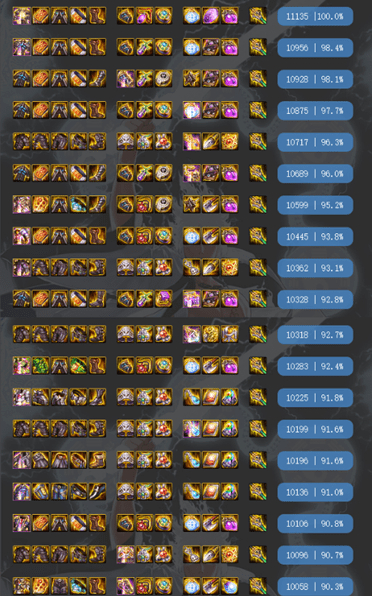 当然对在面对这个一个受欢迎的职业,在装备搭配也是玩家一直讨论的问题,就目前来说总共有3332,533,5222,32222这4种主流搭配,其中3332和533由于有7种属性词条的原因,因此在搭配上也是玩家选择的一种,那么阿修罗排名前三的神话是什么?什么搭配最提升率最大呢? 首先瞎子目前最强的神话是军神耳环,搭配自然也是533搭配,这套搭配集了533各部位最强势的套装,如手搓5,幸运7,军神3(神话),这套不仅适是修罗的533最强搭配,同样也适用于其他职业的最强搭配,另外在武器上由于修罗对于攻速,释放要求比较高,本身Buff不加移速,且开阳剑会降低移速导致军神减少力智的加成,所以一般不开阳剑,测试一般以阴剑为准。 在通过韩械计算器计算可以得出结论,在手搓5的情况下提升率为82532%,另外我们还测试了比较安逸的改恶5套,提升率同样也很高足足有81862%,如果本身手搓技术不高,且对怪物没有足够的认知和走位技巧(手搓打断掉伤害),完全可以用改恶5来代替,同样可以当作毕业装使用。 其次修罗第二强的神话是大幽魂上衣,搭方式是3332搭配,这套搭配包含大幽魂6(神话上衣),次元3和工作服2,属于非常强势的搭配,那么有玩家会问为什么不用大幽魂9+工作服2呢?瞎子是光属性攻击,并不全部技能吃到火强和冰强,这样伤害不是更低吗?其实并不然,大幽魂9固然好,但是鞋子耳环戒指这3个部位和其他部位稀释比较高,在伤害最大化搭配情况下并非最终选择,有时候选择吞粪,次元,狂乱会更好。 在通过大幽魂神话上衣在不同的搭配下,根据计算器我们可以算出在搭配公作服提升率高达80163%,老兵2的时候提升率高达80113%,大幽魂9+工作服/老兵2都是提升率比较低的两套,这说明虽然瞎子没吃到工作服24属强,但是这样搭配下并不输工作服2。 最后瞎子第三强的神话是次元耳环,和排名第二的大幽魂上衣一样也是3332搭配,这套搭配集结了大幽魂6,次元3,老兵2,这次在拥有次元神话的情况下老兵2更好一些,工作服2则要往后靠。、 在根据韩械计算器我们就可以算出结论,在搭配老兵2的情况下提升率高达77258%,工作服2则是76786%,这说明根据不同的神话和搭配最强的2件套也会随之变化,但是提升率几乎相差无几,如果有工老兵2的情况下,不考虑次元神话的极限输出,完全可以不用做工作服2。