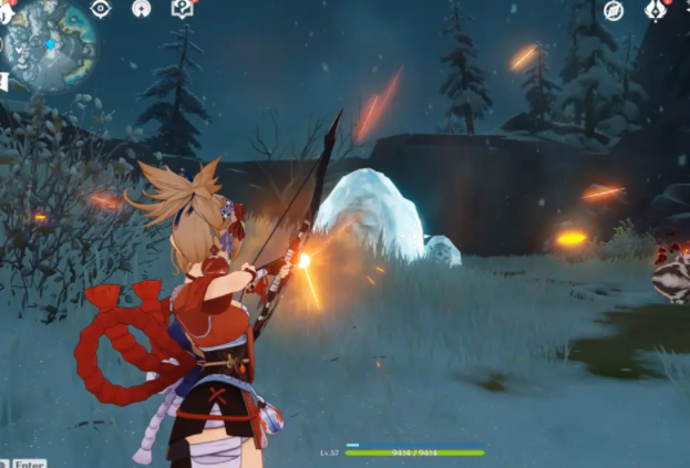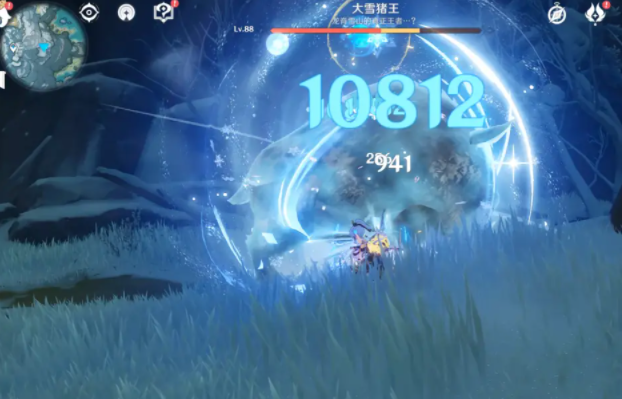 先用火系角色击杀3只被冻住的野猪后,大雪猪王就会出现。