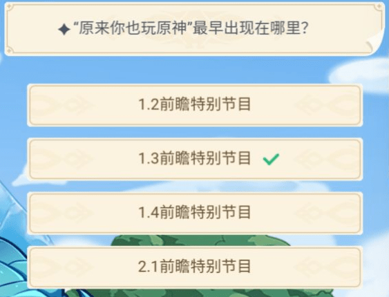 原来你也玩原神最早出现在哪里_原神周年20问答案汇总