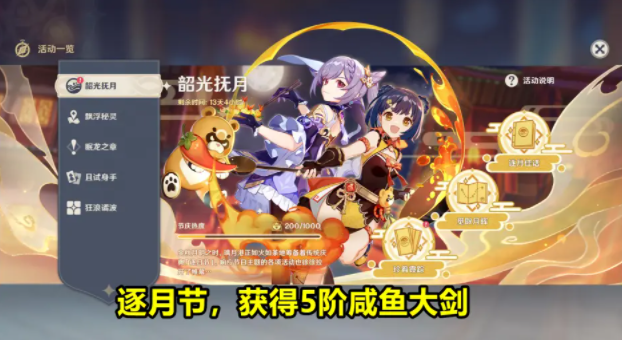 原神最近的活动更新了一把咸鱼大剑,看到有很多玩家问这把剑怎么获取,这里分享获取方法,有需要的用户欢迎参考。 获取方法 逐月节活动除了各种原石奖励之外,最受玩家瞩目的奖励就是那把【衔珠海皇】,江湖人称“咸鱼大剑”,副属性为百分比攻击力加成,武器技能除了对大招的伤害加成之外,还会在大招命中时对目标造成大范围伤害,非常适合以大招为主要输出的角色。 但最重要的是,这是一把绝版纪念武器!如果这个版本没有得到的话,后续想要也没地方找!