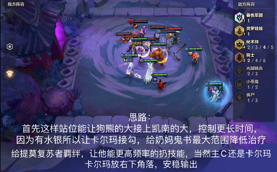《金铲战争鬼法师》是金铲战争手游第四关,你将在其中追逐暮光使徒。和之前的关卡相比,这一次的难度其实是比较低的。这是金铲战鬼法师关卡的通关指南。 金铲铲之战幽魂法师第一关攻略:泰坦中间装备满肉抗伤害,可以让小炮叠羊刀输出。 金铲铲之战幽魂法师第二关攻略:给绿神装备离子火花,降低加里奥和塞提的魔抗,让卡尔玛的法术输出更高,剩下卡尔玛的魔爆和正义之手。 金铲铲之战幽魂法师第三关攻略:这个定位可以让熊的大佬和凯南的大佬连接,控制它的时间更长。由于水银的存在,卡尔玛被允许连接到钩子上,这减少了保姆鬼书的最大治疗范围。 给提莫复苏者纽带,这样他就可以更频繁地投掷技能。当然,主角是Karma。 Karma放在右下角,稳定输出。 |