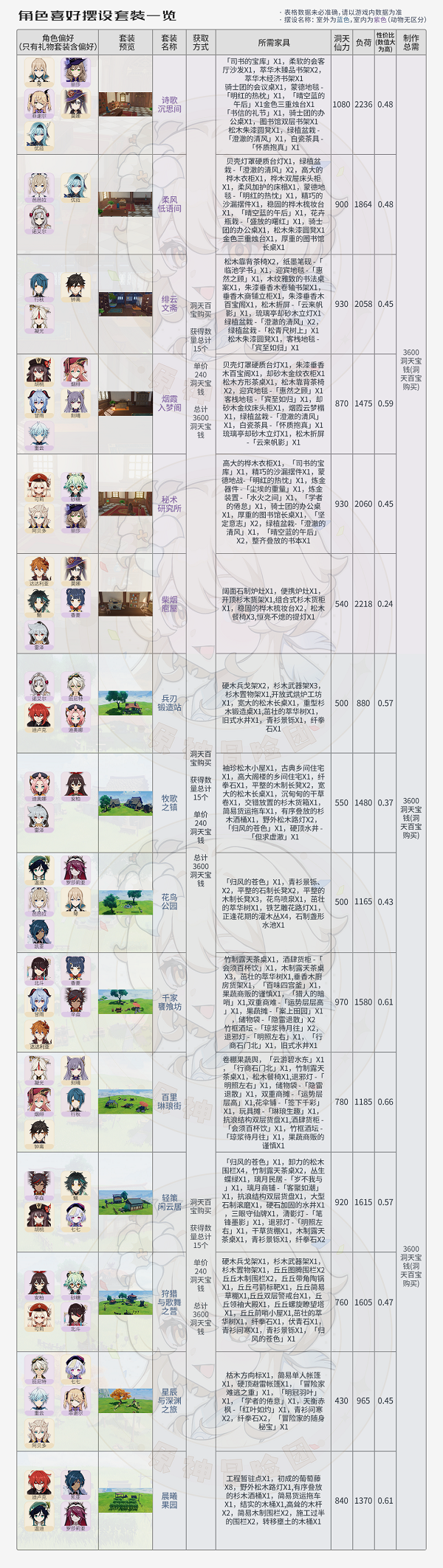 原神入驻角色喜好摆设套装_原神室内外偏好套装角色大全