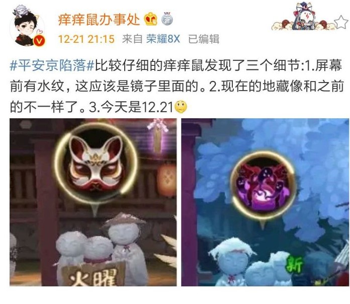 阴阳师出了大事!最新的京都决战中,平安京被海国击败,连登录的庭院都被海国占领了。这背后到底发生了什么?平安京真的从此陨落了吗? 然而,事实并非如此。一些玩家发现了一些奇怪的事情。 因此,这次失败很可能不是真实的,而是一个镜像,其主要目的是为即将推出的新式神云外镜做铺垫。 地藏像是相反、12月21日日期是对称和水波纹。这一系列细节都在暗示着玩家身处镜中,所以下周上线时云镜肯定会逆转,平安京也不会真正被摧毁。 |