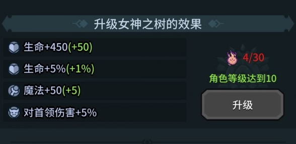 灯笼和地下城光影大厅选择哪棵女神树?解锁光影殿中的女神树后,玩家可以选择不同的灯光来强化角色。那么如何选择收益更高的呢?下面就让我来给大家介绍一下吧。 通关始祖龙骨熔岩第10层后,就可以解锁光影殿,在这里我们可以选择不同的灯光来获得加成效果。 达到10级后可以解锁的神灯共有4盏,这4盏神灯对应的奖励类型不同: 第一个偏向于角色攻击属性,第二个偏向于额外收益属性,第三个偏向于契约兽战斗属性,第四个偏向于人物防御属性。 每次进入战斗只能选择一盏神灯的属性。 你可以根据自己的需要来选择,但是前期还是建议你选择攻击,比较实用。 神女树的升级材料可以通过水柱洞发放。 |