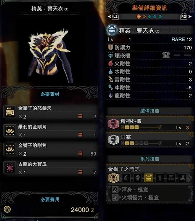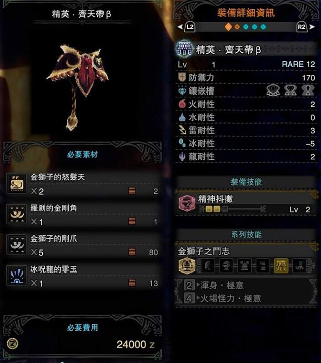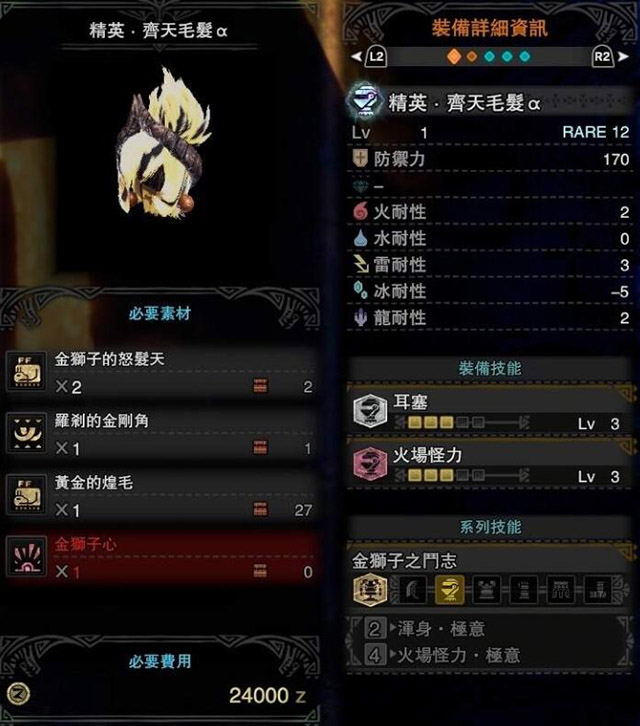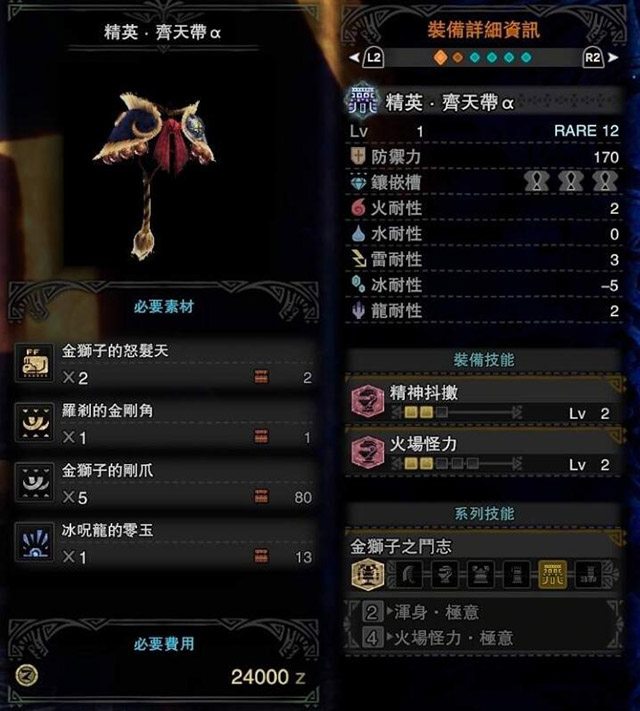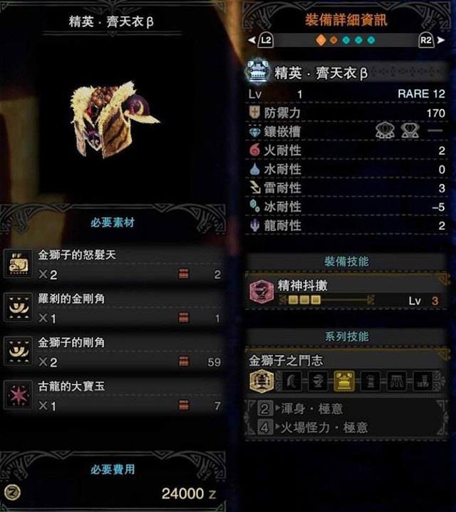 怪物猎人世界冰原激昂金狮子防具一览 冰原激昂金狮子装备性能一览