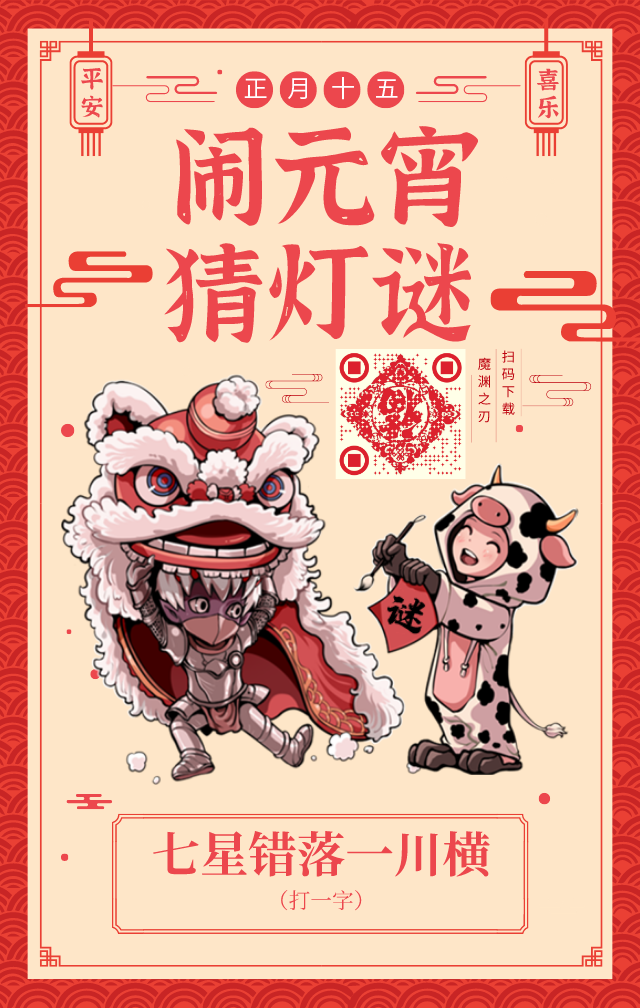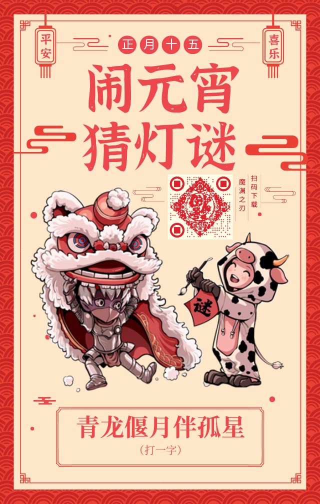 魔渊之刃的灯谜答案是什么?魔渊之刃在元宵节期间推出了猜灯谜游戏。灯谜的答案也是今天的密令,赶紧来看看吧! [游戏介绍]《魔渊之刃》 一款暗黑风格+硬核操作+Roguelike的手游。 职业与武器:十八般武功随意切换 扎实的行动意识:利用以下操作击败敌人 随机性和冒险:拥有数百个增益的深渊盘 丰富的BD构建:打造你的装备套路 组队还是偶遇:封魔之路并不孤单 让我们一起来欣赏一下《魔渊之刃》选手的精彩表现吧! [活动说明]元宵节当然少不了猜灯谜。欢迎大家踊跃参加元宵灯谜晚会。我们为您准备了8个灯谜。评论区猜灯谜即可参与活动并抽取游戏奖励! 灯谜1 谜语2 谜语3 谜语4 谜语5 谜语6 谜语7 谜语8 答案解析听空蒙半心半意,代表恶魔 散布在河对岸的七颗星星代表着深渊 送阳关去找知心朋友,代表 青龙死,月伴孤星,代表刀锋 [活动时间]2021年2月25日-2月28日 [活动奖励]参与评论区猜灯谜,我们将抽取5名玩家送魔渊之刃元宵节红包(含1000钻石游戏奖励+魔渊定制微信红包封面1个)~ 墨源定制微信红包封面 1000钻石游戏奖励 以上就是关于魔渊之刃谜语的全部答案。希望能够对各位玩家有所帮助。 |