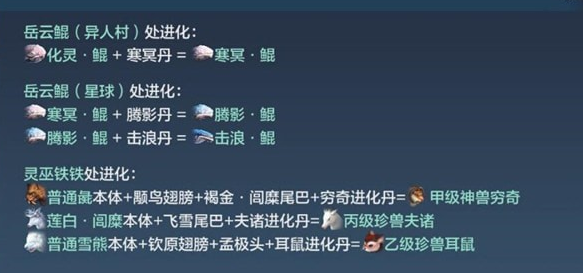迷幻山海雪熊是如何进化的?雪熊是《妄想山海》手游中常见的宠物。雪熊可以通过进化升级成为B级珍稀动物,有耳鼠。那么它如何能够进化呢?下面我就为大家介绍一下雪熊的进化攻略。 1.雪熊可以直接进化成可爱的金耳鼠。 2.进化金耳鼠之前,必须先使用雪熊。 3.玩家可以在雪山地图上找到雪熊并捕获它们。 4、由于雪熊的产卵率不高,所以玩家需要耐心等待。 雪熊进化方式:普通雪熊本体+钦原翅膀+孟极头+耳鼠进化丹=乙级珍兽耳鼠耳鼠进化丹材料:陨铁*10 灵狐毛皮(千年灵狐) *8 千载骨(千年骨龙) *8 火煊角(千年虫王) *8准备进化雪熊所需的材料。 |
