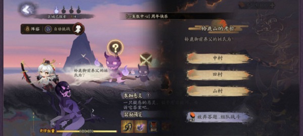 铃鹿御前的养父姓什么?这是《阴阳师》四周年活动从陆海回来路上铃鹿山测试中的问答。那么阴阳师铃鹿御前的养父姓什么?下面将揭晓答案。 问题:铃鹿御前养父的姓氏为?答案:田村 麓海归途超大规模全服对战活动 为了寻找大竹丸的踪迹,开国一行人回到了铃鹿山,一切迎来了新的开始。 *活动时间:9.23~9.30*活动期间,阴阳师将在铃鹿山,体验“虚空岛”和“真实岛”的多种玩法。 |
