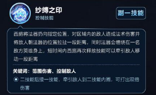 王者荣耀新英雄西施终于上线了。这个英雄吸引了很多玩家的关注,那么西施怎么玩呢?下面我就给大家介绍一下西施的连招技巧。 首先介绍一下西施的技能: 被动技能:少女的诡计 西施的技能伤害会随着自己与敌人距离的增加而增加。 一技能:帷幕束缚印记 西施将法宝投掷到指定位置,对区域内的敌人造成魔法伤害,并将法宝拉动一定距离。同时,法宝会包裹住一名敌方英雄。 5秒内,西施再次点击技能1,法宝会拉动敌人移动一定距离。 二技能:幻影之灵 西施投掷能量球,每0.5秒就会向四面八方发射能量攻击附近的敌人。第一击使敌人移动速度降低30%,持续1.5秒。 2秒后,能量球爆炸,造成法术伤害。内圈的敌人会受到双倍伤害。 第三项技能:不专注 西施将法宝的力量注入自己的体内,获得持续8秒的强化状态,刷新幻影之灵的冷却时间。强化期间,面纱封印命中后,可以控制敌人连续两次移动;同时,幻影之魂的冷却时间减半。发动大招时,西施获得50%的加速效果,持续1秒。 连招推荐: 团战:23211 团战开始时,先使用2技能造成伤害,然后发动大招,刷新2技能继续造成伤害,使用1技能控制敌人造成伤害。使用一套技能后,即可完成收获。 追击:1232 一技能控制敌人,配合二技能进行消耗。然后就可以发动大招,然后使用二技能打出全套伤害。 逃生:11 西施的一技能可以控制敌人,并使敌人向指定方向移动。它可以拉开敌人的距离,创造逃跑的机会。 推荐召唤师技能:闪光 |