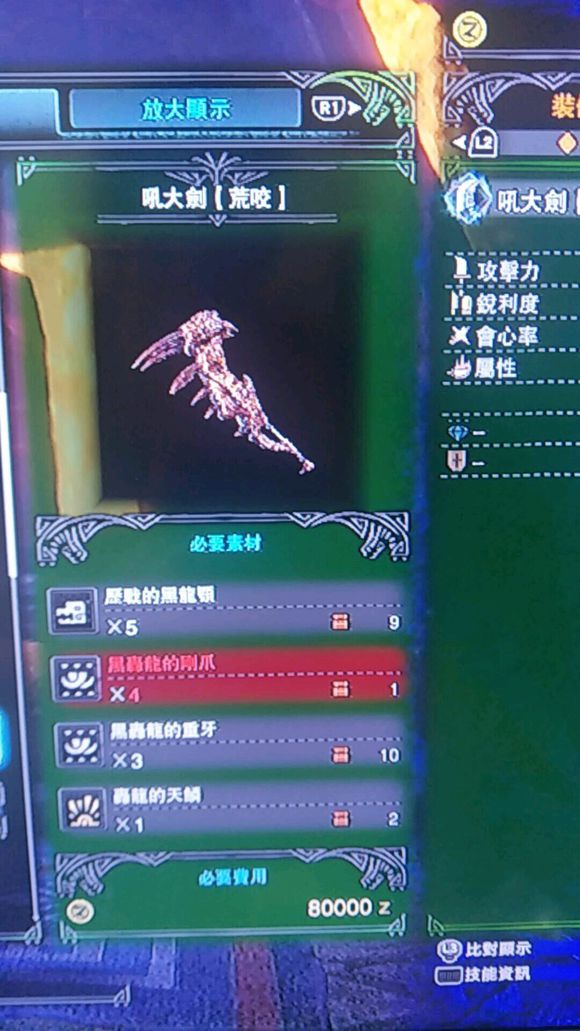 需要以下几个材料才能从轰龙大剑圣级到黑轰大剑